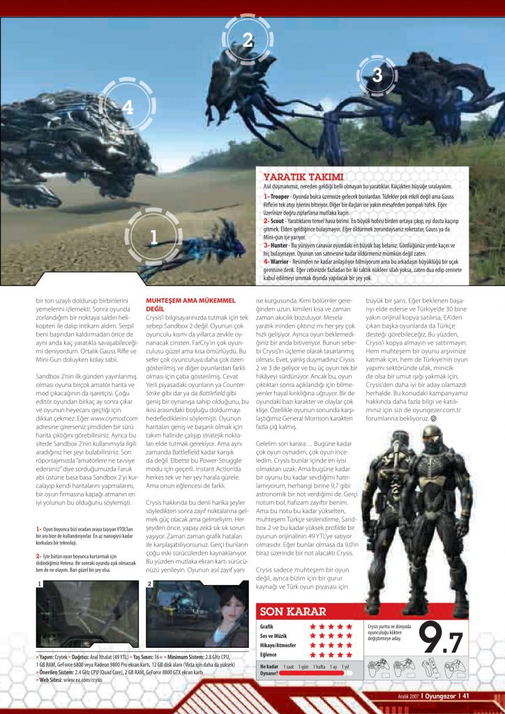 Crysis game review article of Oyun Gezer magazine in 2007.